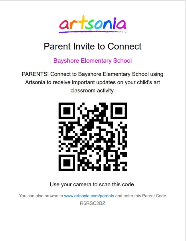 Join your students Art Gallery to see all the students work created in Art class. Artsonia Teachers __ School Code