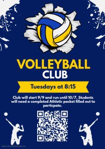 Volleyball Club- Tuesdays 9/9 through 10/7 before school