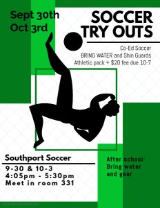 Soccer Club- Tuesdays and Fridays 10/7 until December after school until 5:30.